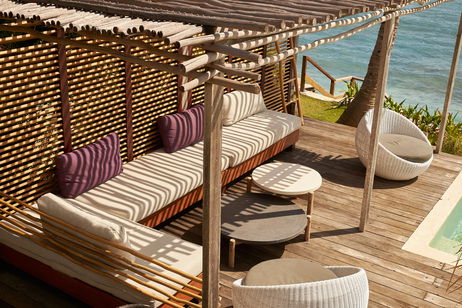 • Interiores de Diseño: Una estética elegante de casa de playa blanca, complementada con antigüedades balinesas y muebles vintage italianos, crea un ambiente con estilo y a la vez acogedor.