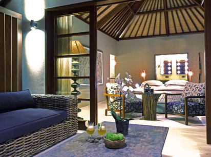 The rooms have huge sliding doors to your private spacious roofed lounge with views to the pool area of the Purist resort with its manicured tropical gardens.