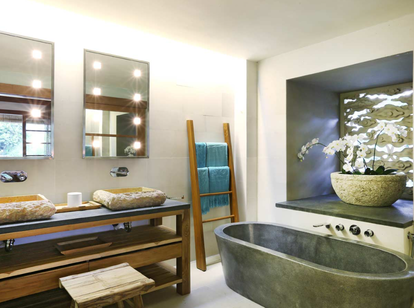 The Bathrooms are decorated with Indonesian lime stone and have a granite bath,